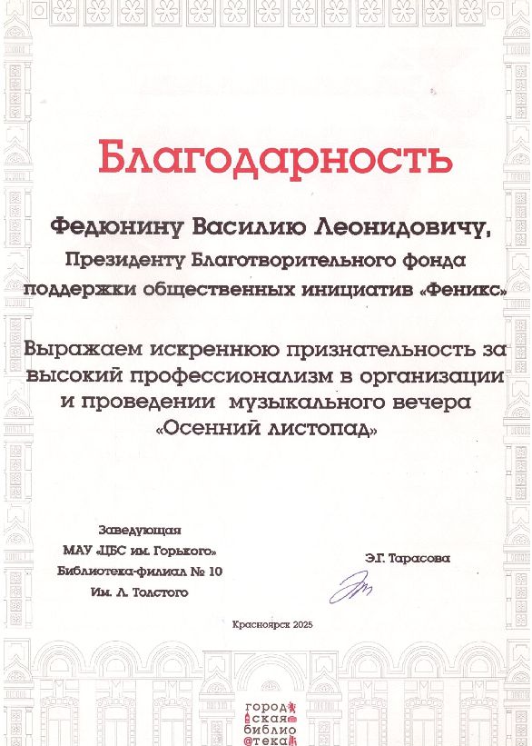 Наш президент Федюнин Василий Леонидович является председателем комиссии "Общество" Общественной палаты г.Красноярск Мы абсолютно открыты к инициативам, которые будут рождены за пределами нашего фонда, мы всячески готовы оказать содействие и поддержку всем амбициозным важным социальным проектам и их идейным вдохновителям.