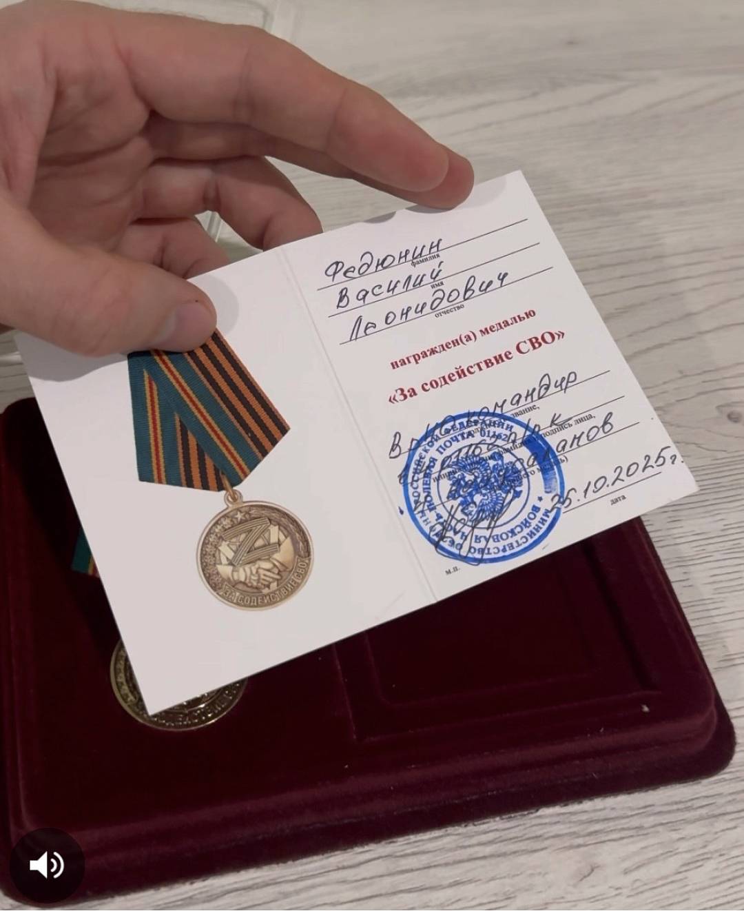 В начале 2026 года наш президент Василий Федюнин получил уже вторую медаль за Помощь СВО